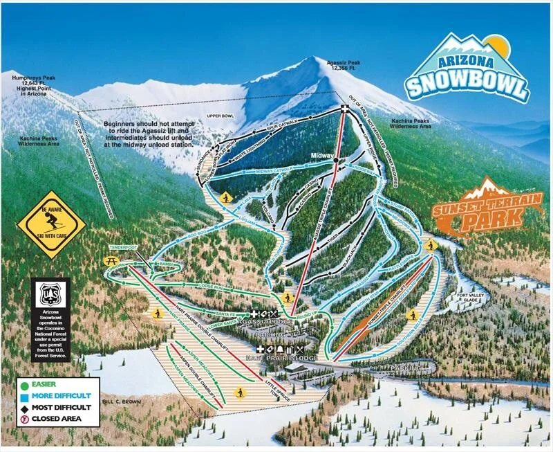 Snowbowl is approximately 160 miles north of Phoenix. You’re also on the route to the Grand Canyon on your way up. To avoid chains, 4WD or the stress of winter driving conditions, always check the weather and road conditions before traveling to avoid being turned around by troopers. Throughout the year 4WD’s and chains are required to travel north. You also have travel options like the Alpine Express which is a luxury chartered express to relieve your worry. This luxury bus will take you and all your snow gear directly to Arizona Snowbowl. They have two pick-up locations, Tempe Market Place and Happy Valley Town Center.