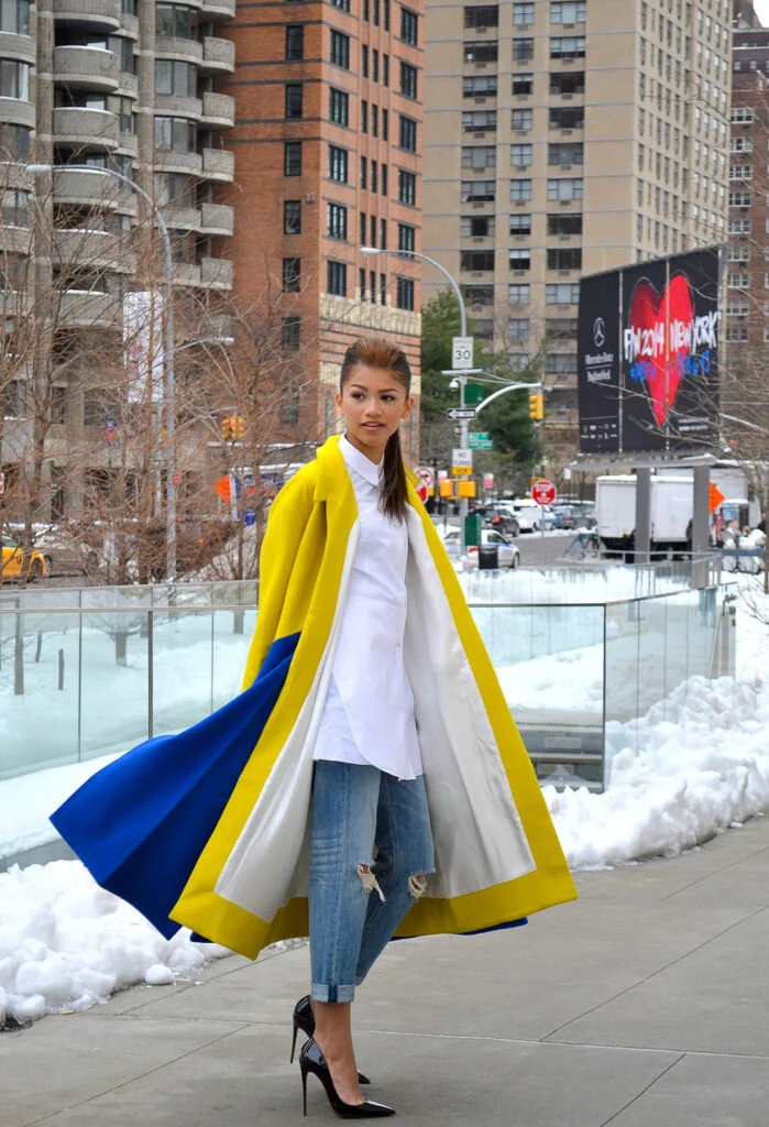 What a super expression with a stylish cape. From the leather to cool and chic to the woman off to the office. Cape fury!!!