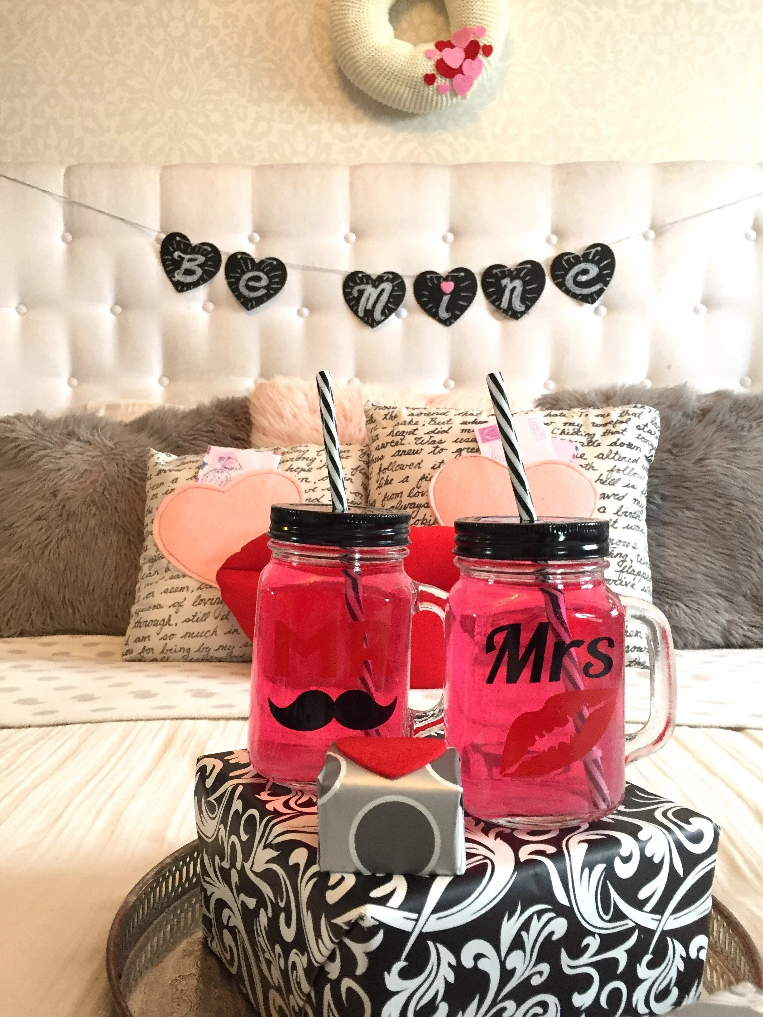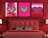 Keep your bedroom simple, no need to go overboard. If it’s an intimate setting everything will end up on the floor anyway. If you have a red wall adding love art is a good addition. Or the simple pink hearts decor below. The middle picture and decor is great for birthdays or anniversaries.
