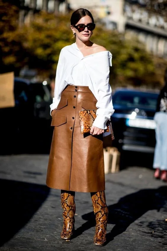 A textile once wore strictly for Fall and Winter, leather is now trending during the spring too. The material was spotted on the Spring 2020 runways. Here are a few of my favorite Spring leather inspired looks from a street view.